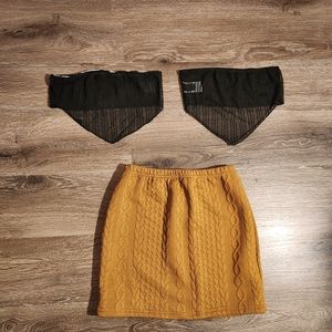 New Tan Mini Skirt w/ 2 Free Tops All XS