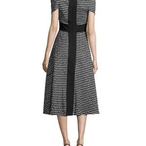 Lela Rose Gingham Taffeta Open V-neck Dress Off-shoulder Side Pockets sz 8 M