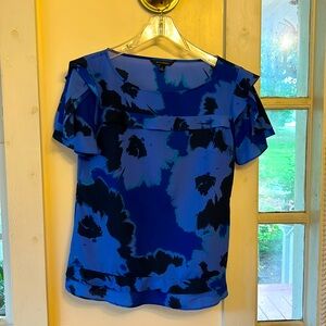 J. Crew Black Smocked Neck Ruffle-Hem Blouse