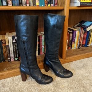 coclico black leather round toe inside zip tall boot sz 38.5 euc