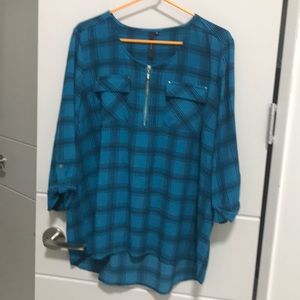 Cathy plaid teal blouse