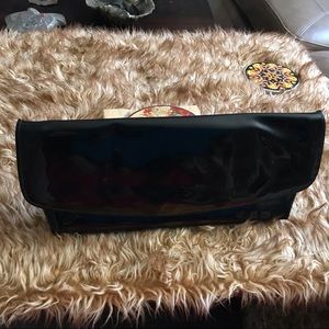 Small vintage black silk fold over clutch