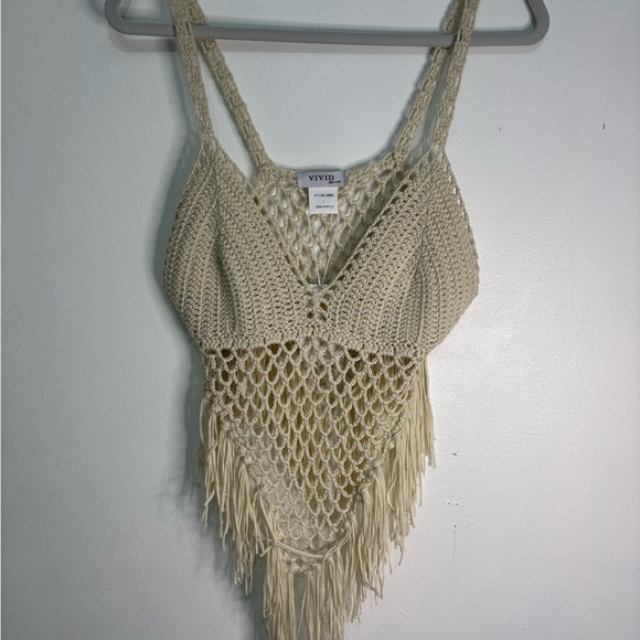 Nice top! Very cute and new as stated. Nice cream color. Good for summer and can be worn over a bikini top or cami bra. Nice knitted pattern. Can go with a variety of bottoms. True to juniors size. Arrived very quickly and safely. Thanks so much!