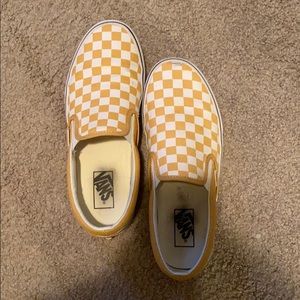 ochre checkered slip on vans