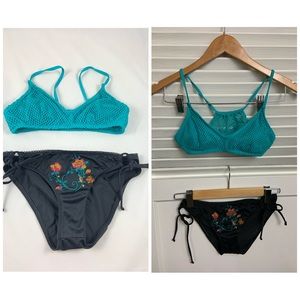 Blk/Teal Lace Waist Cincher Corset with Garter Straps/Bra/VS Jewel undies bundle