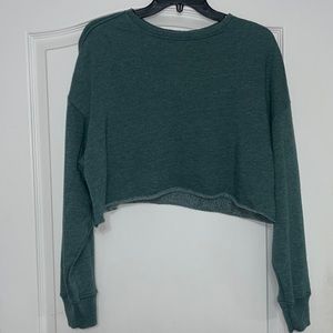 Long sleeve cropped greenish blue shirt