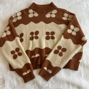 Kendal&Kylie Brown and Cream Flower Print Knit Crop Sweater