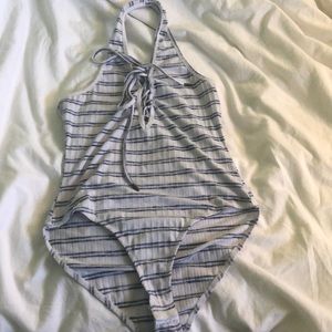 Halter white & blue striped bodysuit ***never worn
