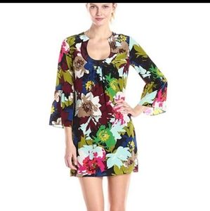 Trina Turk 20th holiday 2015 Bonita dress bell sleeves multicolored sz 8 floral