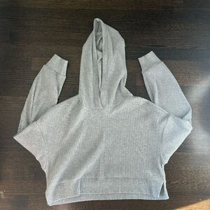 Grey ribbed Alo cropped hoodie