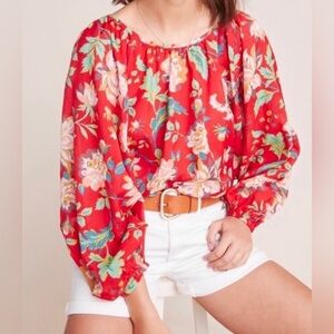 Maeve by Anthropologie Lake House Blouse Red Floral Pattern Top Size XL