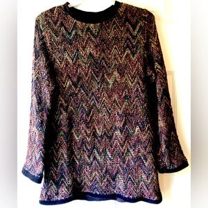 Daisy Fuentes Purple Fuchsia Pink Green Abstract Gather Front Knit Blouse Top 3X
