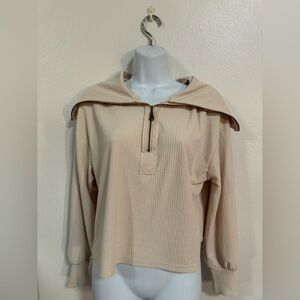 NWOT Solid Lapel Neck Blouse in Beige