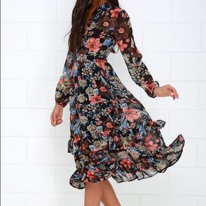 Peony Earned Black Floral Print Midi Dress