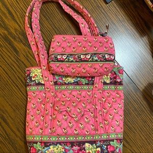 Vera Bradley Pink Pansy Bag & Makeup Bag