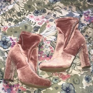 Pink velvet booties