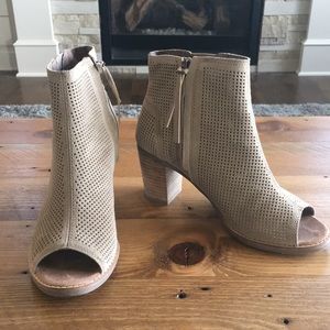 Toms Majorca Peep Toe Tan Suede Booties