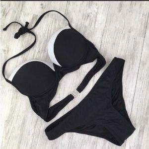 NWT Black & White Striped Bikini - M