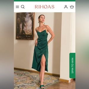 The Pearl Strap Side Slit Midi Dress Emerald Green