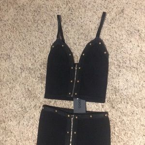 NWT Skirt & Top Set Ribbbed Gold Stud Maxi Outfit