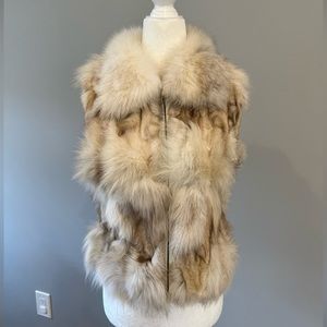Real fox fur vest women, Small, Beige