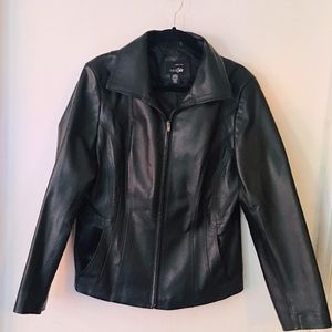 Worthington Black Leather 3 Button Coat - Large