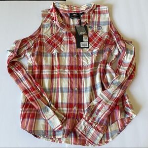 NWT Harley Davidson Americana Plaid Cold Shoulder Top