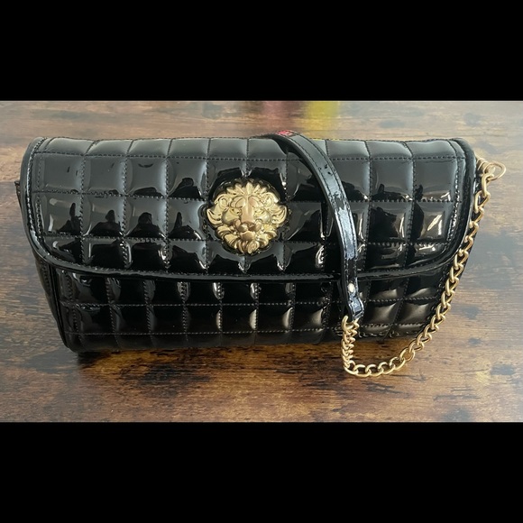 This is a gorgeous quilted black patent leather clutch with gold shoulder chain strap by Anne Klein! The gold lion snap closure is such a beautiful touch. Love it! This bag is in wonderful condition and came with its original satin dust bag. It is such a pretty, classic handbag I know I'll love to wear for years to come! Thanks so much!