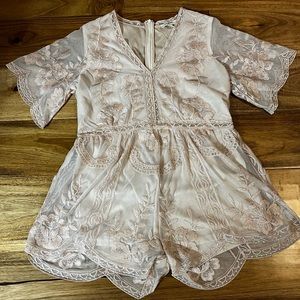 Rose gold and nude romper with flutter sleeves. Never worn.