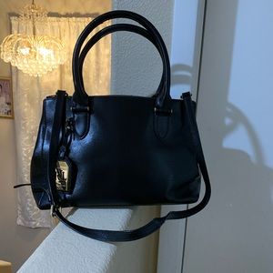 COACH Chelsea Black Pebbled Leather w/Dbl Straps in Saddle Leather