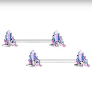 Gemstone Star Burst Snowflake Nipple Ring Set