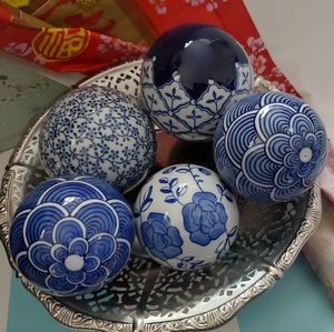Home Decor Circle balls Blue & White in Silver bowl