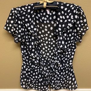Xhilaration Black and Cream Polka Dot Top Size Medium