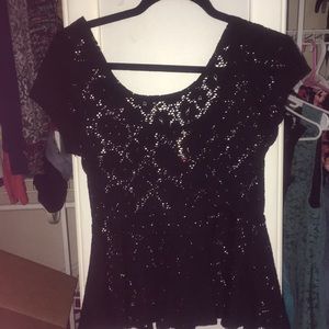 Black Lace boat neck top/over lay