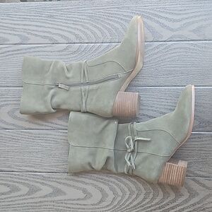 Earth Origins Tori Olive Green/Gray Suede Leather Heel Ankle Boots Size 9