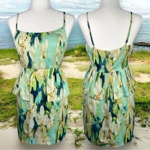 BB Dakota Floral Spaghetti Strap Peplum Turquoise Multi Color Mini Dress Size 4