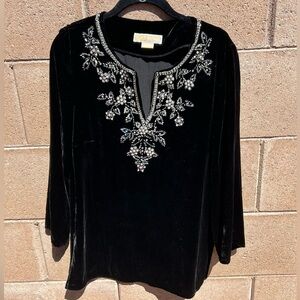 Michael by Michael Kors - Jeweled and Beaded Black Velvet Tunic