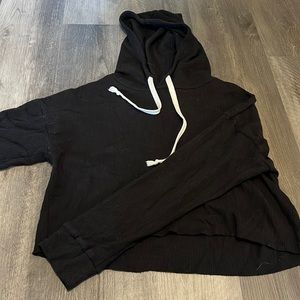 Cropped waffle knit long sleeve hoodie
