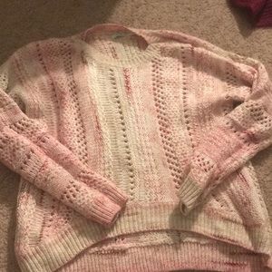 UO red and white and tan knit high low sweater