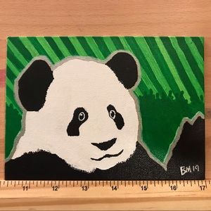 Panda Acrylic Painting in black, white and green color scheme hand painted art