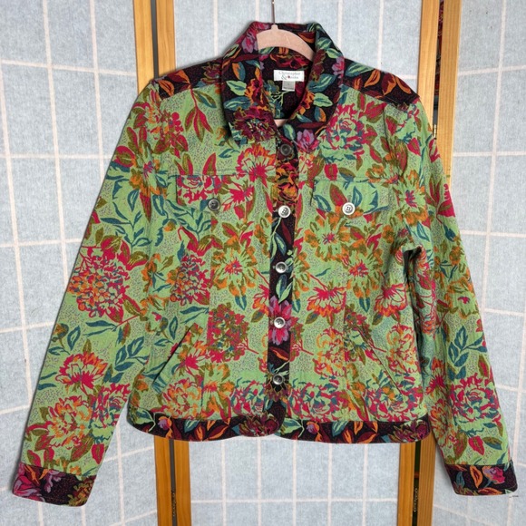 Karen Kane Tops - Karen Kane 3X Ruffle Front Garden Fairy Floral Blouse Orange Pink Vibrant‎ Bold