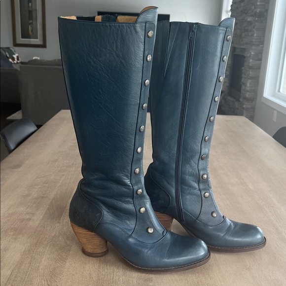 1 pair of blue under knee boots Fluevog boots in excellent condition. Priced well and packaged great