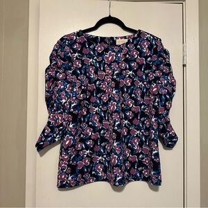 Johnny Was Love Travis Ruffle Sleeveless Blouse Blue Floral size L