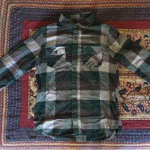 Men’s button up green plaid flannel w/2 pockets