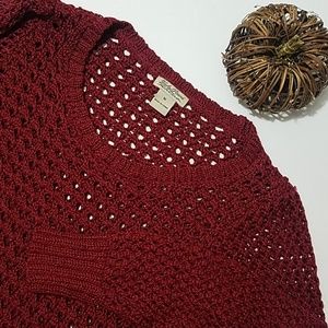 Lucky Brand Maroon Crochet Knit Sweater Medium