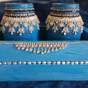 Mason jars with vintage jewelry