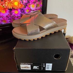 Sorel Criss Cross Slide Size 10 (Womens) Color Ash Brown (Metalic)