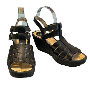 Bare Traps Shoes Womens 7.5 M Black Leather Slip On Thong Wedge Sandals