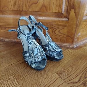 Dress Snake print beaded rhinestones silver gray