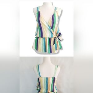 DEREK HEART JUNIORS STRIPED ROMPER SLEEVELESS tie back sz medium